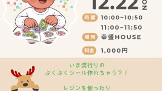 | 開催日 | 12月12日(金)10:30~13:00 ※時間内出入り自由 |