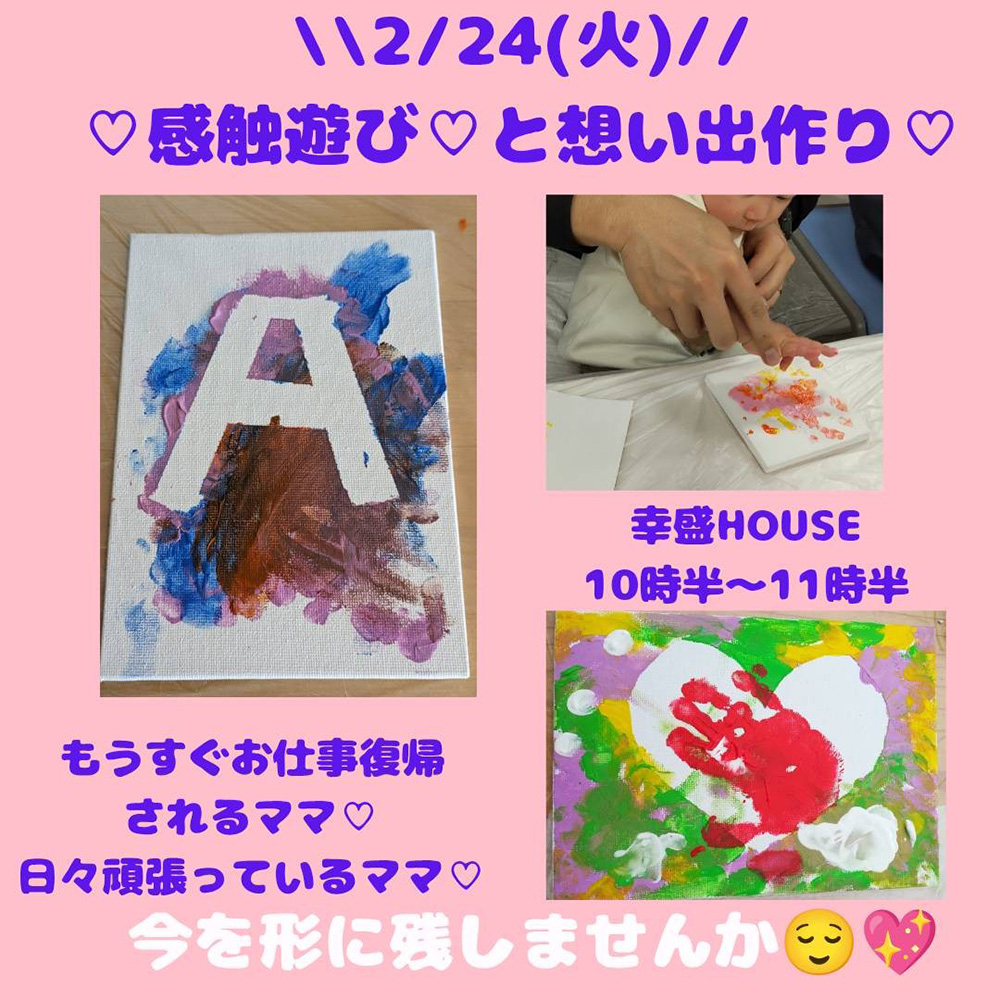 ママとお子様の今を想い出にキャンバスに絵の具で作品を作り、お持ち帰りできます。